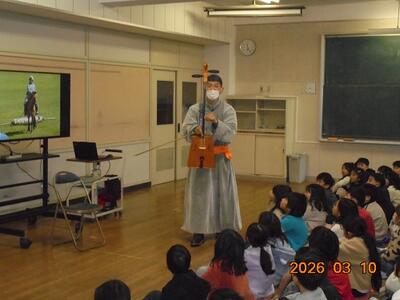 3月10日、馬頭琴奏者の橘亜樹さんに学校にお越しいただき、
