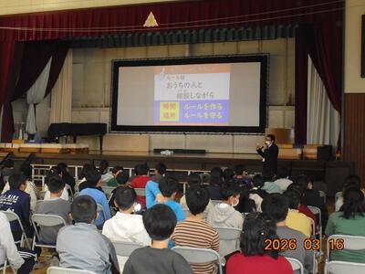 3月16日、KDDIの方に来ていただき、情報モラル教室を行いました。
