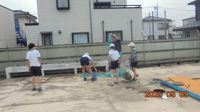 6年生がプール掃除をしてくれました。遊んでいる子がだれもおらず、みんな一生懸命!!素晴らしい6年生です。プールもきれいになりました。