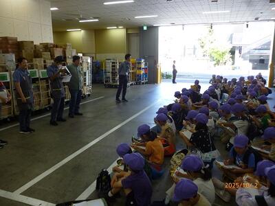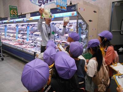 スーパー「サミット」を見学させてもらいました 投稿: 教頭 (11:30) 10月1日、2日に、エミテラス内のスーパーマーケット「サミット」を 3年生が見学させていただくことができました。 担当の方が1クラスずつ、ついてくださって、 バックヤードから冷凍庫まで、店内をくまなく案内していただきました。 「サミット」の皆様、ありがとうございました。