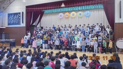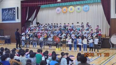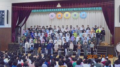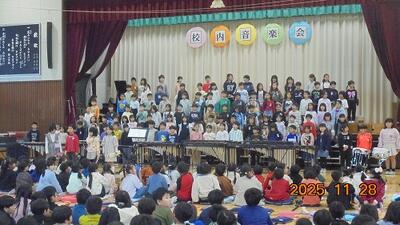 校内音楽会 投稿: 教頭 (09:14) 校内音楽会を開催しました。 11月28日は全児童が互いの学年の演奏や合唱を聞きあう会、 そして11月29日は保護者の皆さま向けの音楽会でした。 どの学年も素晴らしい演奏、合唱でした。ブラボー!! ご来賓の皆さま、保護者の皆さま、ご協力ありがとうございました。