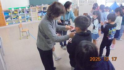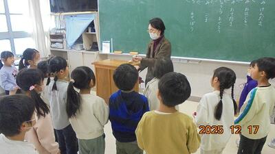 1年生 昔遊び体験 投稿: 教頭 (11:20) 12月17日、1年生が昔遊び体験をしました。 松ヶ丘長生会の方々、更生保護女性会の方々にご来校いただき、 お手玉、おはじき、けん玉、コマ、竹馬、水鉄砲などを教えてもらいました。 ありがとうございました。