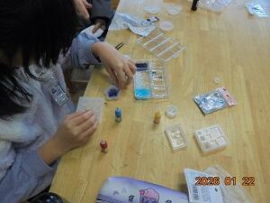 クラブ活動 3年生クラブ見学 投稿: 教頭 (18:38) 1月22日はクラブ活動の日。それぞれのクラブで、子どもたちが楽しそうに活動していました。 3年生は来年度のクラブ活動に向け、様子を見学しました。 科学クラブで作っていたのは「スライム」。 マンガ絵画工作クラブで作っていたのは「キーホルダー」です。