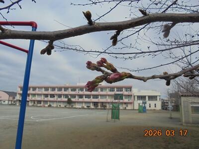 校庭の桜、明日には開花宣言?