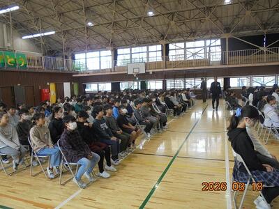 卒業式予行練習 投稿: 教頭 (11:43) 3月18日、卒業式予行練習を行いました。 6年生はとても立派!!明日卒業式でも大丈夫なくらい立派でした。 この日は5年生にも参加してもらい、卒業式の様子や6年生のふるまいを見てもらいました。 しっかりとした態度で参加していた5年生。 南小学校151代目のリーダーから152代目のリーダーへのバトンがつながりました。