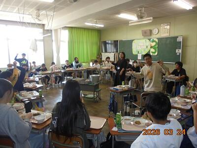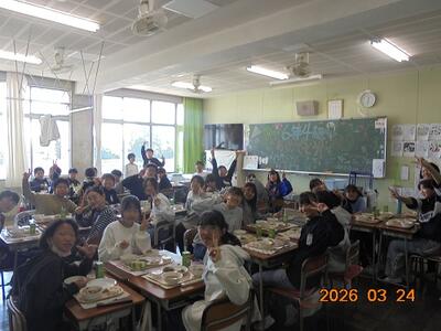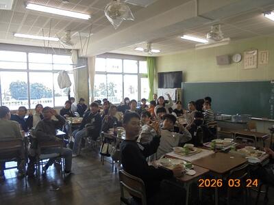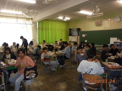 6年生 最後の給食 投稿: 教頭 (12:46) 3月24日、6年生は今日が最後の南小給食です。 明日は卒業式です。 6年生のみんなの「別れの言葉」と歌は感動必至。 6年生の保護者の皆様、ハンカチは必ずお持ちください。