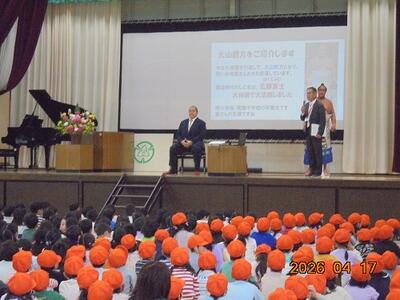4月17日、本校の卒業生である北勝富士改め大山親方が、南小を訪問してくださいました。